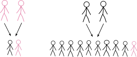Figur 5. Til venstre: Hvis to forældre er atopiske, vil 50% af deres børn også være atopiske. Til højre: Hvis begge forældre ikke er atopiske, er det 10 % af deres børn, der vil være atopiske.
