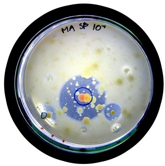- Kig på jeres fem agarplader. Er der nogle af bakteriekolonierne, som har dannet protease-enzymer, og som man derfor kunne se nærmere på ved fremstilling af miljøvenligt vaskepulver?