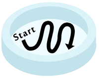 Figur 2. Når man leder efter bjørnedyr, er det en fordel at gå systematisk til værks. Her er der indtegnet et forslag til, hvordan man kan undersøge petriskålen. Da prøven er forstørret omkring 30 gange, vil bare små ryk på petriskålen se meget voldsomme ud i mikroskopet. Bevæg derfor skålen meget forsigtigt rundt. Kig efter små hvidlige dele, som lyser op og bevæger sig. Når petriskålen rykkes rundt, vil bevægelserne i vandet få alt (mos, dyr osv.) til at bevæge sig. Stop derfor nogle gange med at bevæge petriskålen rundt og vent, til mosdelene ligger stille. Man kan på den måde nemt spotte levende dyr. Bjørnedyr bevæger sig på en ret karakteristisk måde, som man kan se efter. I videoen nedenfor vises det, hvordan det kan se ud i stereomikroskopet at lede efter bjørnedyr.