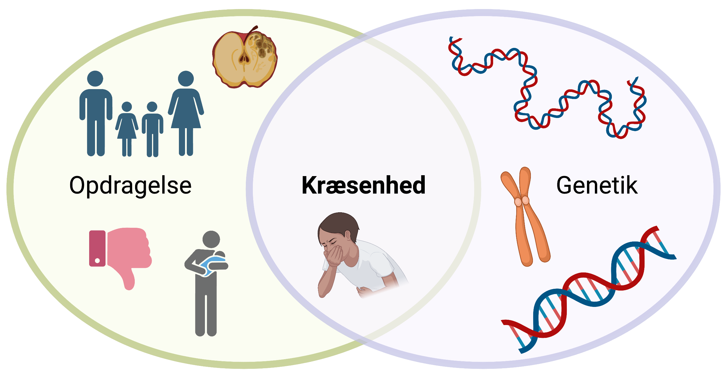 Figur 10. Kræsenhed. Kræsenhed kan både skyldes ens opdragelse og ens genetik. Nogle madretter kan være forbundet med dårlige oplevelser, hvilket giver en negativ opfattelse på retten. Ens gener kan også gøre, at man kan opfange specifikke smage eller dufte, andre ikke kan, og dette kan gøre fødevaren ligefrem uspiselig for en.