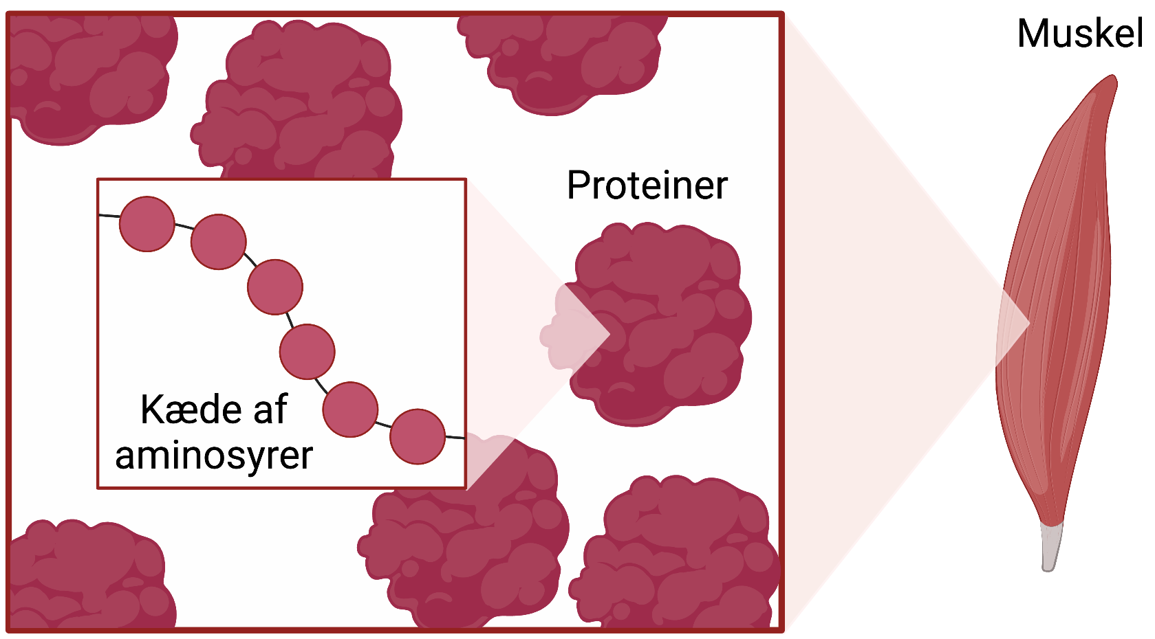 Figur 8. Aminosyrer opbygger proteiner. Proteiner er bygget op af kæder af aminosyrer. Proteinerne kan f.eks. opbygge muskler.