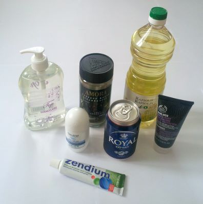 Figur 1. Vi omgiver os konstant med stoffer, og vi bruger til daglig utallige produkter, der indeholder forskellige aktive stoffer. Nogle eksempler kunne være sæbe, hudcreme, tandpasta, kaffe, deodorant, øl og madlavningsolie, der alle indeholder aktive stoffer.