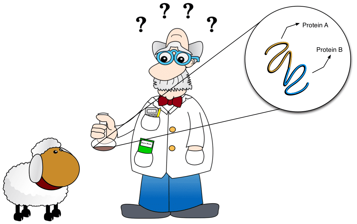 En forsker har fået en prøve fra et får, der er blevet sygt efter at have spist affald med en ukendt sammensætning . Det er nu forskerens opgave at finde årsagen til fårets sygdom, hvilket bl.a. indebærer at karakterisere mulige proteiner i prøven, der normalt ikke vil være til stede i et raskt får.