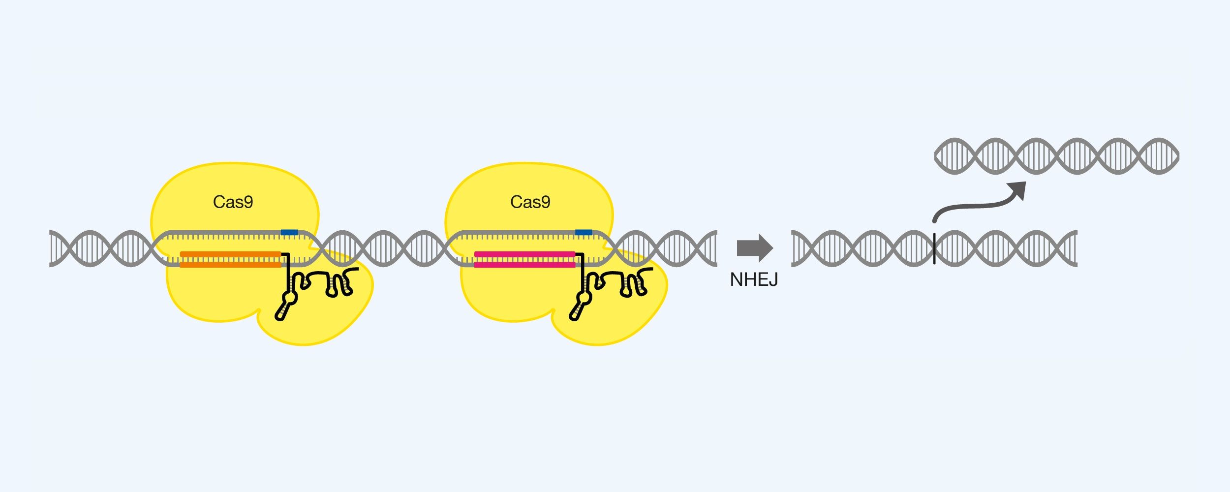 Figur 7. Excision af en DNA-sekvens ved brug af Cas9 og to stykker gRNA, samt udnyttelse af non-homologous end joining (NHEJ).