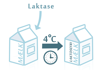 Figur 11. Med det kuldeaktive laktase-enzym kan laktosen i mælk nedbrydes ved køleskabstemperatur.