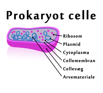 En bakterie er en meget lille levende organisme, som ikke kan ses med det blotte øje. Den er nemlig kun omkring 1-10 mikrometer, altså 0,001-0,01 millimeter i diameter. En bakterie består af en enkelt celle – mere præcist af en enkelt prokaryot celle. Denne celletype indeholder en række karakteristiske celledele. Arvemateriale, bestående af DNA, ligger frit i cytoplasmaet, og cellen har dermed ingen cellekerne. Dette er en af de væsentligste forskelle mellem den prokaryote celle og den såkaldte eukaryote celle, som vi mennesker er opbygget af. Nogle bakterier kan derudover have et lille ekstra stykke cirkulært DNA, et plasmid, hvor gener kodende for gavnlige egenskaber for bakterien ofte findes. Det kan for eksempel være antibiotikaresistens. Derudover indeholder prokaryote celler ribosomer, hvor proteiner bliver dannet. Cellen omsluttes af en membran og en cellevæg, der adskiller bestanddelene i cellens indre fra omgivelserne. En prokaryot celle er dermed ret enkelt opbygget i forhold til eukaryote celler.