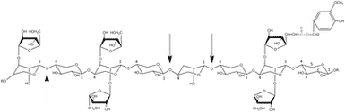 Figur 31. Struktur af arabinoxylan. Den lange kæde består af xylosemolekyler, hvortil der er bundet arabinosemolekyler.