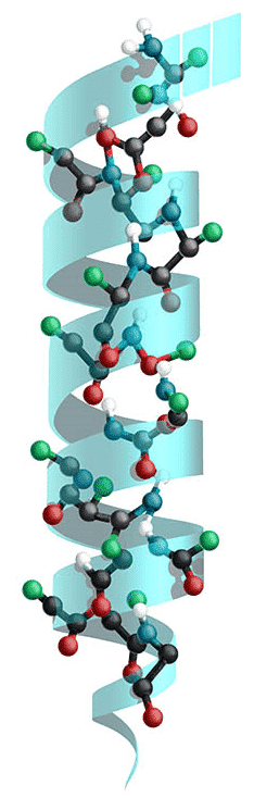 Figur 28. Alfa-helixen er formet som en spiral og har 3,6 aminosyrer pr. omdrejning.