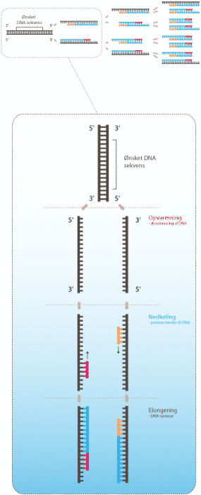 PCR er en metode der blandt andet bruges til at opformere dele af DNA-sekvenser in vitro (latin for “i glas”. Dvs. ikke i kroppen). Ved hjælp af specifikke primere og en termostabil DNA-polymerase dannes store mængder af specifikke gener.