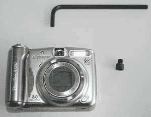 Når kameraet skal monteres på holderen, skal du bruge den lille plast-skrue, samt unbrako-nøglen.