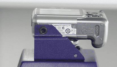 Holderen med kameraet placeres oven på transilluminatoren, så lys ikke kan slippe ind ved kanterne for neden. Kameraet og transilluminatoren tændes. Zoom ind på gelen – billedet bliver dog af højest kvalitet hvis der ikke zoomes helt ind. Tryk udløseren halvt ned og lad kameraet fokusere, før du tager billedet.