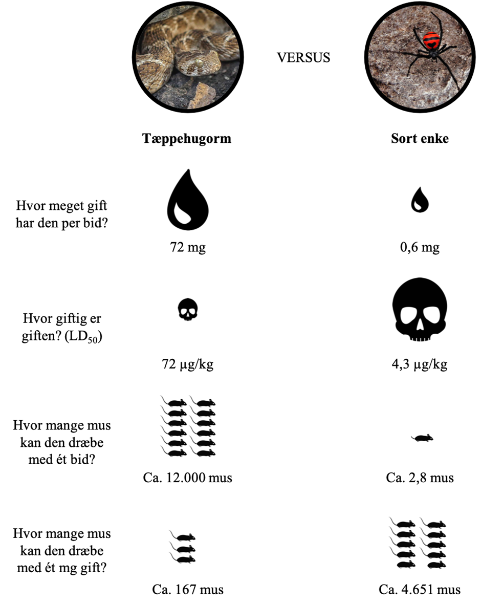Figur 2. Sammenligning af gift fra en tæppehugorm og en sort enke