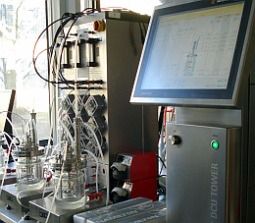 Figur 18. Små laboratorie-fermentorer, hvor cellefabrikker kan dyrkes og undersøges. Fermentorer fra Institut for Systembiologi, DTU.