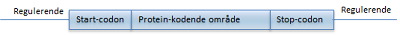 De DNA-sekvenser, der bliver til protein, starter og slutter med andre ord med hhv. et start- og stop-codon. På deres ydersider findes desuden en række regulerende DNA-sekvenser, der hjælper med at aktivere transkriptionen af genet, så mRNA’et overhovedet dannes (se figur 13). Disse regulerende DNA-sekvenser koder ikke for selve proteinet.