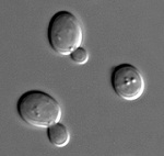 Figur 15. Saccharomyces cerevisiae-celler (bagegær). De små, nye celler dannes ved knopskydning fra de store.