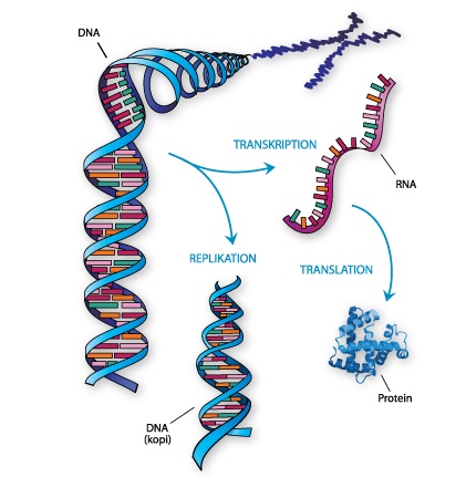 Det centrale dogme inden for biologien beskriver den genetiske informationsvej, som alle organismer følger. Generne er kodet som DNA og afskrives efter behov til RNA i transkriptionen. mRNA oversættes i translationen til det protein, som genet koder for. Proteiner deltager i næsten alle vigtige processer i cellerne.