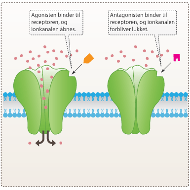 Figur 6. Til venstre ses virkningen af en agonist, og til højre ses virkningen af en antagonist.