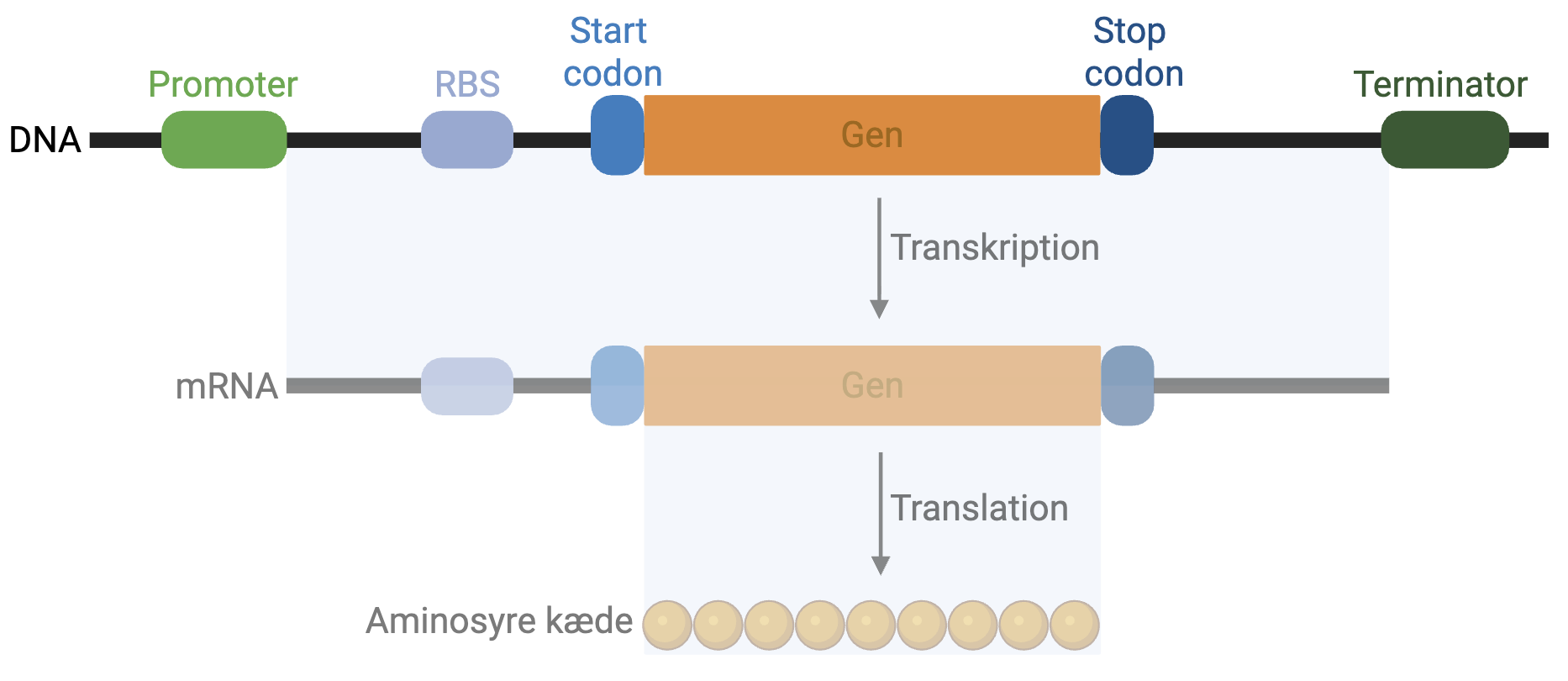 Figur 1: Oversigt over nødvendige, regulerende dele for gen-ekspression.