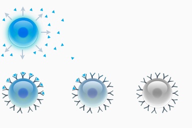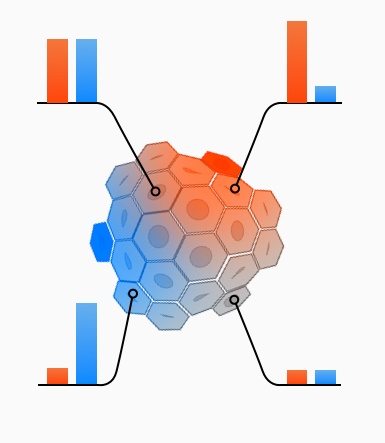 Når disse signaler opfanges af cellerne, reagerer de på bestemte måder. Hvis en celle f.eks. ligger foran til højre i celleklumpen på figuren, vil den modtage kraftige signaler fra cellerne foran, men kun svage signaler fra cellerne til venstre. I cellernes arvemasse er indkodet, præcis hvordan de skal udvikle sig ved modtagelsen af bestemte signaler, og cellerne i et bestemt område udvikler sig derfor ens. Celler, der kun modtager det blå signal, vil altså udvikle sig anderledes end celler, der modtager både det røde og det blå signal. Det skal understreges, at der i et udviklende foster er mange flere signalproteiner end de her angivne, og at farverne blot er for illustrationens skyld.