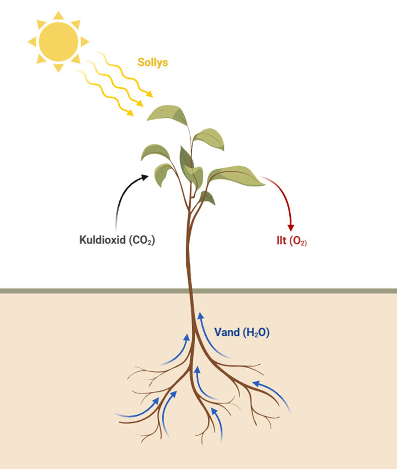 Figur 2: Fotosyntese er den proces, hvor planter omdanner kuldioxid og vand til glukose og ilt ved hjælp af sollys.
