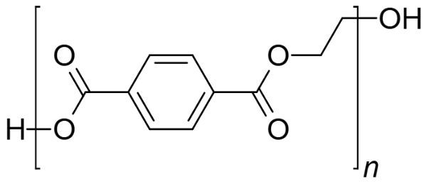 Figur 1: Struktur af PET. PET består af n gentagende MHET-enheder, hvor n angiver antallet af monomerenheder i polymerkæden.